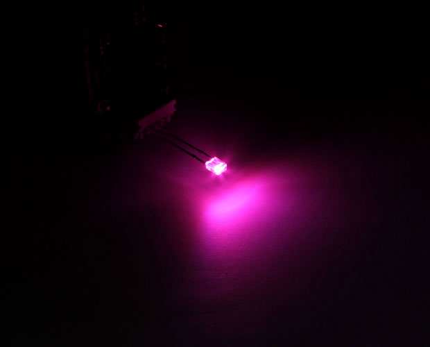 ・足の短い方を+:ピンクで発光 - 付属抵抗使用時電源電圧:5V~15V